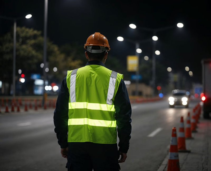 High-visibility vests with reflective strips to ensure visibility in low-light or high-traffic environments.